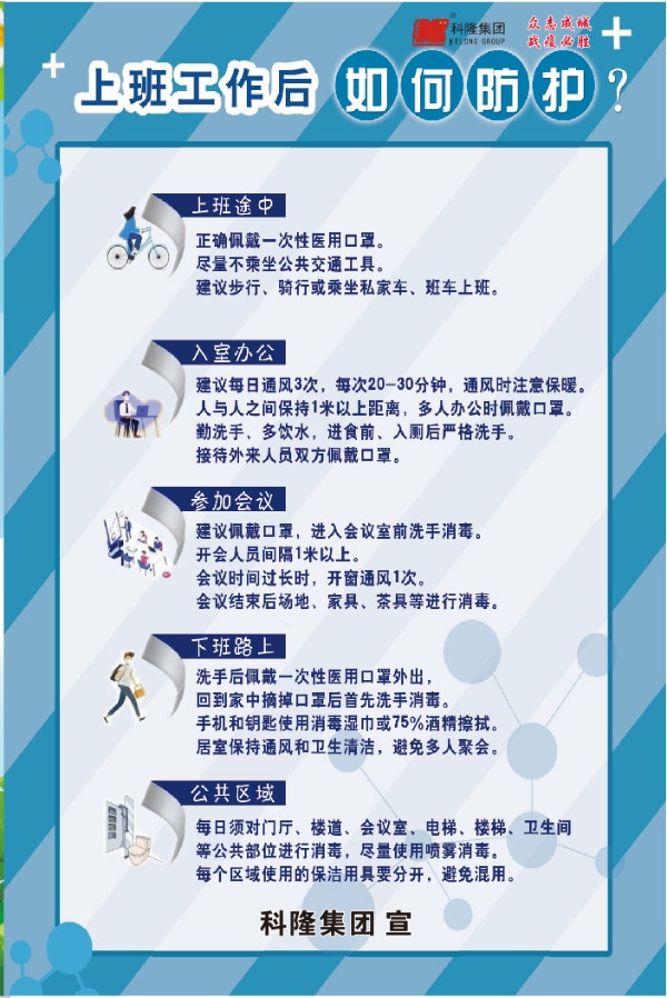 新冠肺炎疫情發(fā)生以來,國內(nèi)企業(yè)生產(chǎn)經(jīng)營發(fā)展受到較大影響,面臨形勢相當(dāng)嚴(yán)峻。2月8日,國務(wù)院聯(lián)防聯(lián)控機制印發(fā)通知,對切實加強疫情科學(xué)防控、有序做好企業(yè)復(fù)工復(fù)產(chǎn)工作作出安排部署。為確保科隆集團生產(chǎn)經(jīng)營和疫情防控工作兩不誤,集團各單位快速反應(yīng)、馬上行動,成立“疫情防控復(fù)工小組”,展開復(fù)工和疫情防控專題工作計劃,努力推動企業(yè)恢復(fù)正常生產(chǎn)經(jīng)營,為社會經(jīng)濟發(fā)展提供支撐、做好保障。