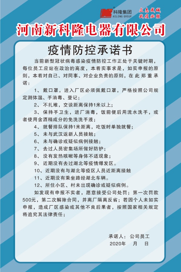 新冠肺炎疫情發(fā)生以來,國內(nèi)企業(yè)生產(chǎn)經(jīng)營發(fā)展受到較大影響,面臨形勢相當(dāng)嚴(yán)峻。2月8日,國務(wù)院聯(lián)防聯(lián)控機制印發(fā)通知,對切實加強疫情科學(xué)防控、有序做好企業(yè)復(fù)工復(fù)產(chǎn)工作作出安排部署。為確保科隆集團生產(chǎn)經(jīng)營和疫情防控工作兩不誤,集團各單位快速反應(yīng)、馬上行動,成立“疫情防控復(fù)工小組”,展開復(fù)工和疫情防控專題工作計劃,努力推動企業(yè)恢復(fù)正常生產(chǎn)經(jīng)營,為社會經(jīng)濟發(fā)展提供支撐、做好保障。